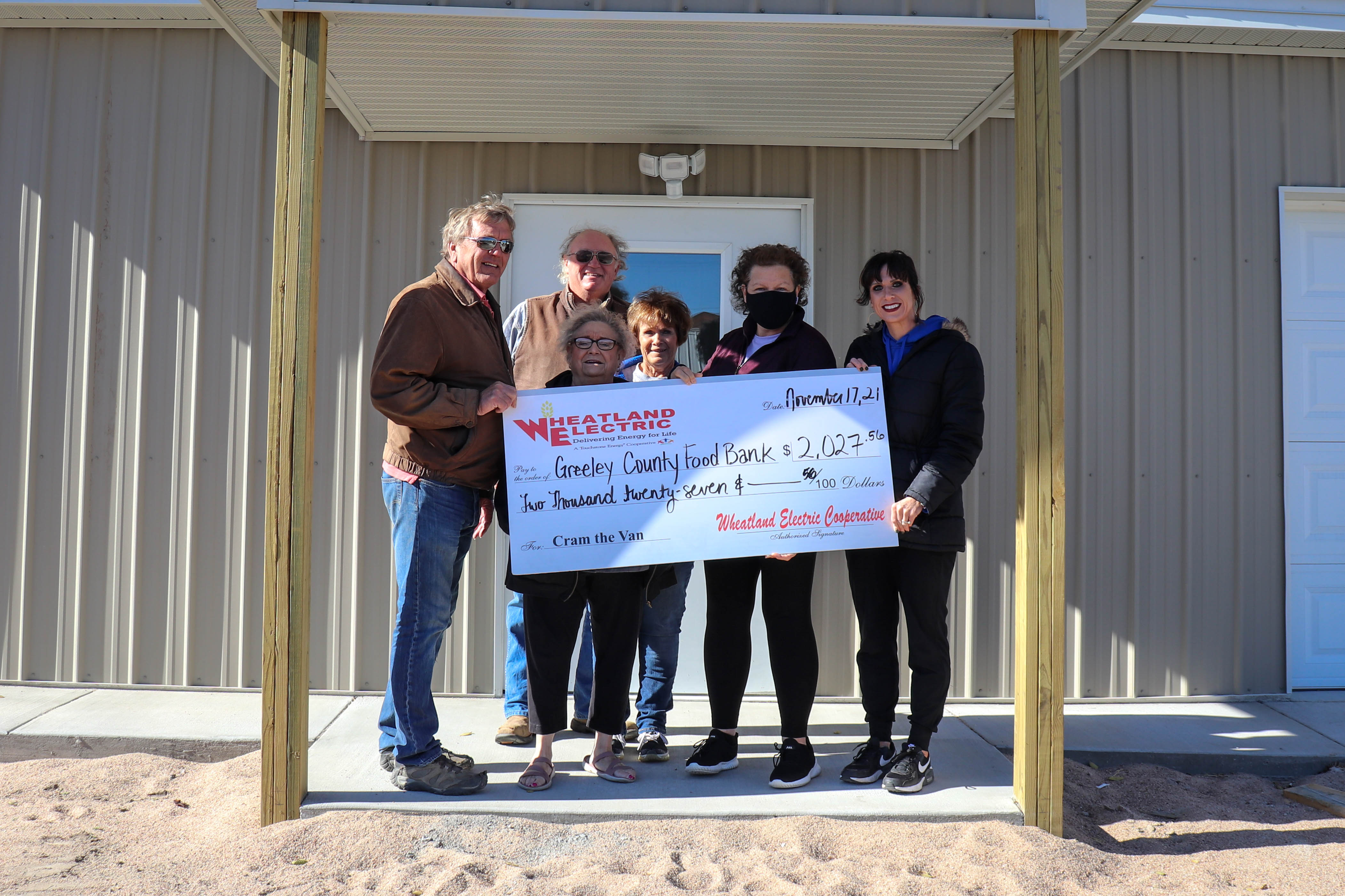 The Community Food Bank of Barton County received a total of 11,132 lbs. in donations from Cram the Van this year for the Great Bend community. Pictured here are John Sullivan (from right), Wheatland trustee, Mary Hoisington, member services and key accounts manager at Wheatland, and food bank volunteers Kathy Levingston, Dan Haselhort, and Ruth Behrens, who also serves as the food bank's president.Mark Arnold, Wheatland Electric trustee for District 7, presents a check for $1,320.27 to Velta Glenn, a representative of the Caldwell Food Bank. An additional $250 donation was also made to the United Methodist Food Pantry in Caldwell. A total of 2,211 lbs. of food donations were raised for the Caldwell community from our 2021 Cram the Van season.The Emmaus House in Finney County received $1,311 in donations from our funds raised during Cram the Van in 2021. A total of 3,173 lbs. of food donations were donated in Finney County. Pictured here (from left) are Sara McClure, member services and key accounts manager at Wheatland, and representatives of the Emmaus House including Brittney Knoll, director, and Robin Marsh, executive director/CEO. Genesis Family Health in Finney County received food donations and $1,121 in cash donations from our 2021 Cram the Van season. A total of 3,173 lbs. were raised for Finney County residents. Pictured here are Sara McClure, member services and key accounts manager at Wheatland (far left), and representatives of Genesis Family Health.The Harper Mission Mart received $1,121 in cash donations from our 2021 Cram the Van food drive. A total of 3,841 lbs. of food donations were raised for Harper County. Pictured (from left) are Mary Hoisington, member services and key accounts manager, Nathan Schrock, staking technician, Mike Alldritt, a representative of the Harper Mission Mart, and Wade Grumbein, area wide supervisor.Horns for Hope (c/o USD 363) at Holcomb High School received a check for $1,369.50 in addition to food donations from our Cram the Van events. A total of 4,065 lbs. were raised for the Holcomb community. Pictured here are students and teachers from Holcomb High School with Sara McClure, member services and key accounts manager at Wheatland (far right).The Wichita County Food Bank in Leoti received a check for $2,271 in addition to food donations from our 2021 Cram the Van season. A total of 3,051 lbs. were raised for Wichita County. Pictured here (from left) are Wheatland employees Kelley Burch, area wide supervisor, and Alli Conine, manager of member services and corporate communications, with representatives of the Wichita County Food Bank.The Ministerial Alliance in Scott City received a cash donation of $3,667.92 for Hope's Closet in addition to several thousand pounds of food donations. A total of 6,266 lbs. of food donations were raised for Scott County. Pictured here are representatives of the local food pantry with Wheatland employees: Damon Carmin, wireless tower technician (far left), Jevin Kasselman, director of IT/broadband (second from left), Katie Eisenhour, Wheatland trustee (third from right), Alli Conine, manager of member services and corporate communications (fourth from left), Rhei Thurman, executive assistant (second from right), and Andy Rodriguez, wireless tower technician (far right).The Hamilton County Food Bank in Syracuse received $2,648.52 from our 2021 Cram the Van season. A total of 2,949 lbs. of food donations were raised for Hamilton County. Pictured here are Stacey Addison-Howland (far left), Wheatland trustee, and Alli Conine, manager of member services and corporate communications (far right) with representatives of the local food bank.The Greeley County Food Bank in Tribune received $2,027.56 in cash donations from our 2021 Cram the Van season in addition to food donations. A total of 2,648 lbs. of food donations were raised for Greeley County. Pictured here are Mike Thon (far left), Wheatland trustee, and Alli Conine (far right), manager of member services and corporate communications, with representatives and volunteers of the local food bank.