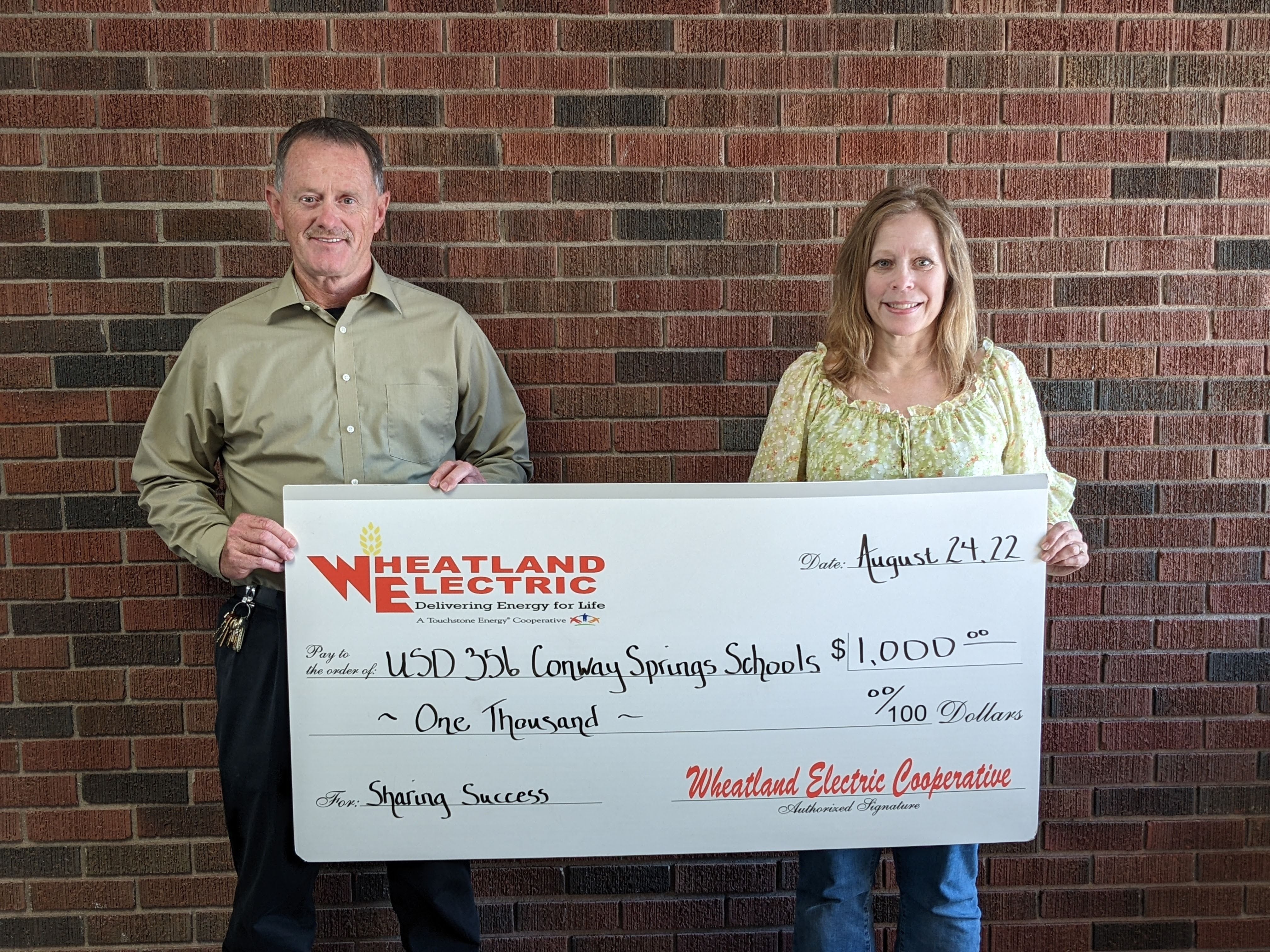 Conway Springs, KS – Wheatland Electric Cooperative, Inc. announced today that its Sharing Success Fund, managed by the Scott Community Foundation, has awarded a $1,000 grant to USD 356 Conway Springs Schools for the Support OWLS project.
