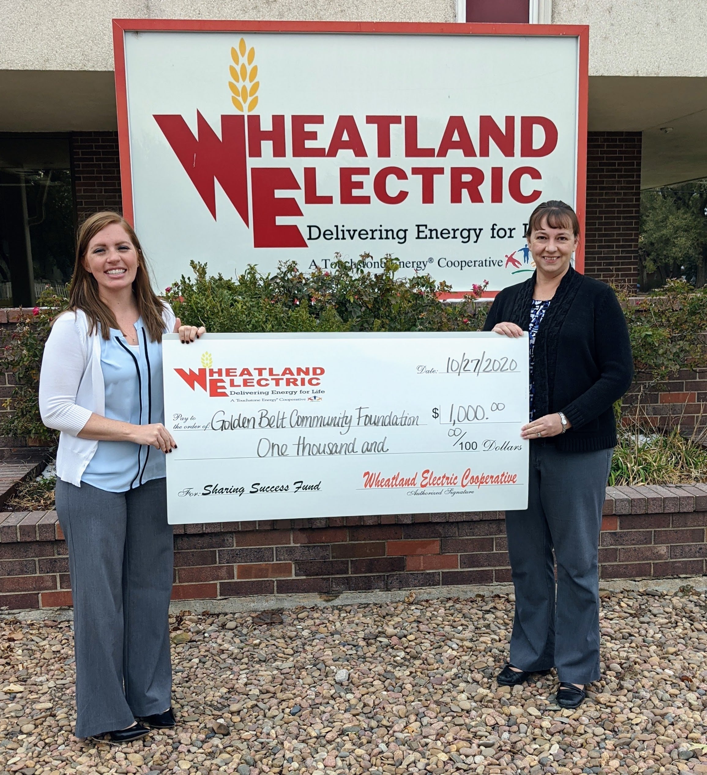 GREAT BEND – Wheatland Electric Cooperative, Inc. announced today that its Sharing Success Fund, managed by the Scott Community Foundation, has awarded a $1,000 grant to the Golden Belt Community Foundation. The Golden Belt Community Foundation will use this Sharing Success grant money to continue providing matching funds that encourage community members to give generously on Giving Tuesday (December 1, 2020), as well as helping with expenses incurred by migrating to a new virtual giving platform. Last year the Golden Belt Community Foundation raised over $200,000 in a single month with over 450 gifts that were received for Giving Tuesday.