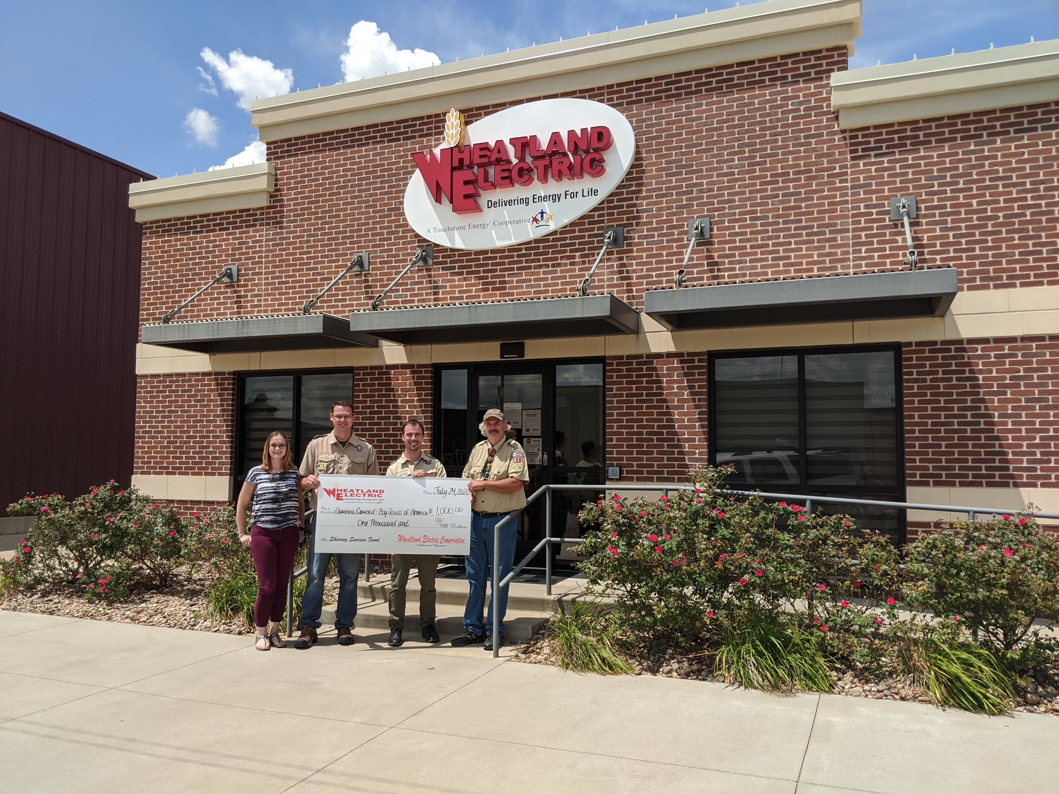 Wheatland Electric Cooperative, Inc. today announced that its Sharing Success Fund, managed by the Scott Community Foundation, has awarded a $1,000 grant to the Quivira Council of the Boy Scouts of America. The Units in Anthony and Harper include more than 60 boys and young men. The Sharing Success grant money will be used to help fund program registrations and camperships so that more youth can join, and existing Scouts can remain in the program.
